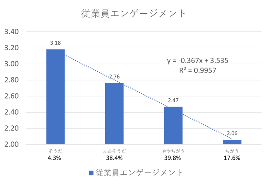 以下では、DXと従業員エンゲージメントの関係についての分析結果のうち、一部を抜粋して記載しています。