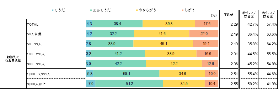 (質問)「私の働いている会社では、DX(ITやデジタル技術を使った取り組み)を進めたことで、便利になったり、働きやすくなるなどの変化がある」